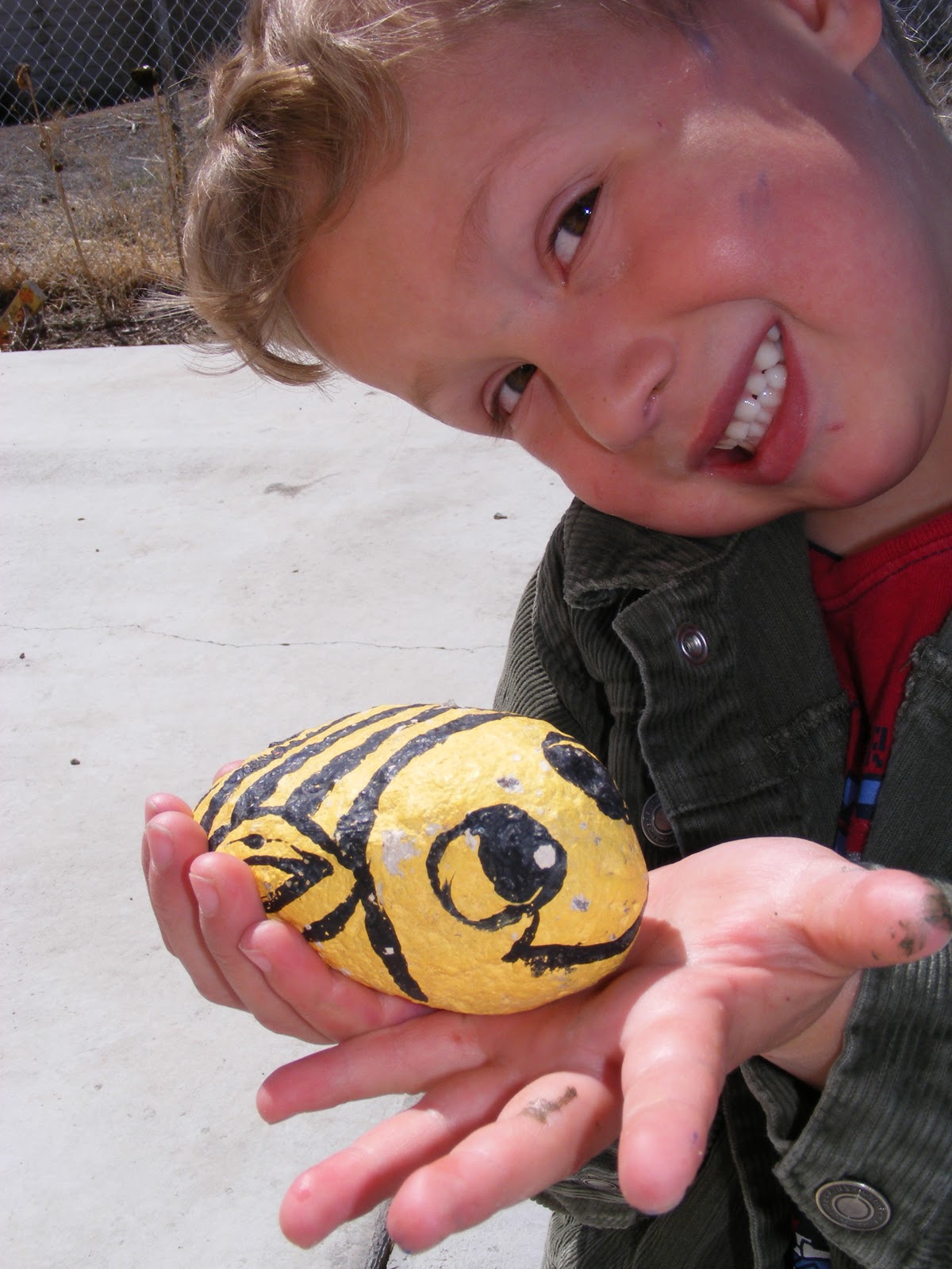 Paint your rock to look something like a bee or you could try painting it into a lady bug. What ever you like best. I should completely dry in about 5 minutes.