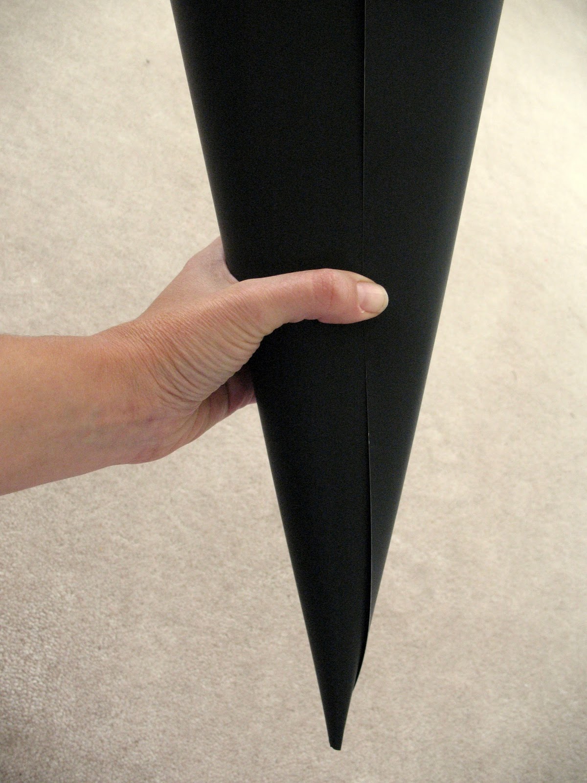 1. Roll the poster board into a cone.  Secure it with tape and a little hot glue.