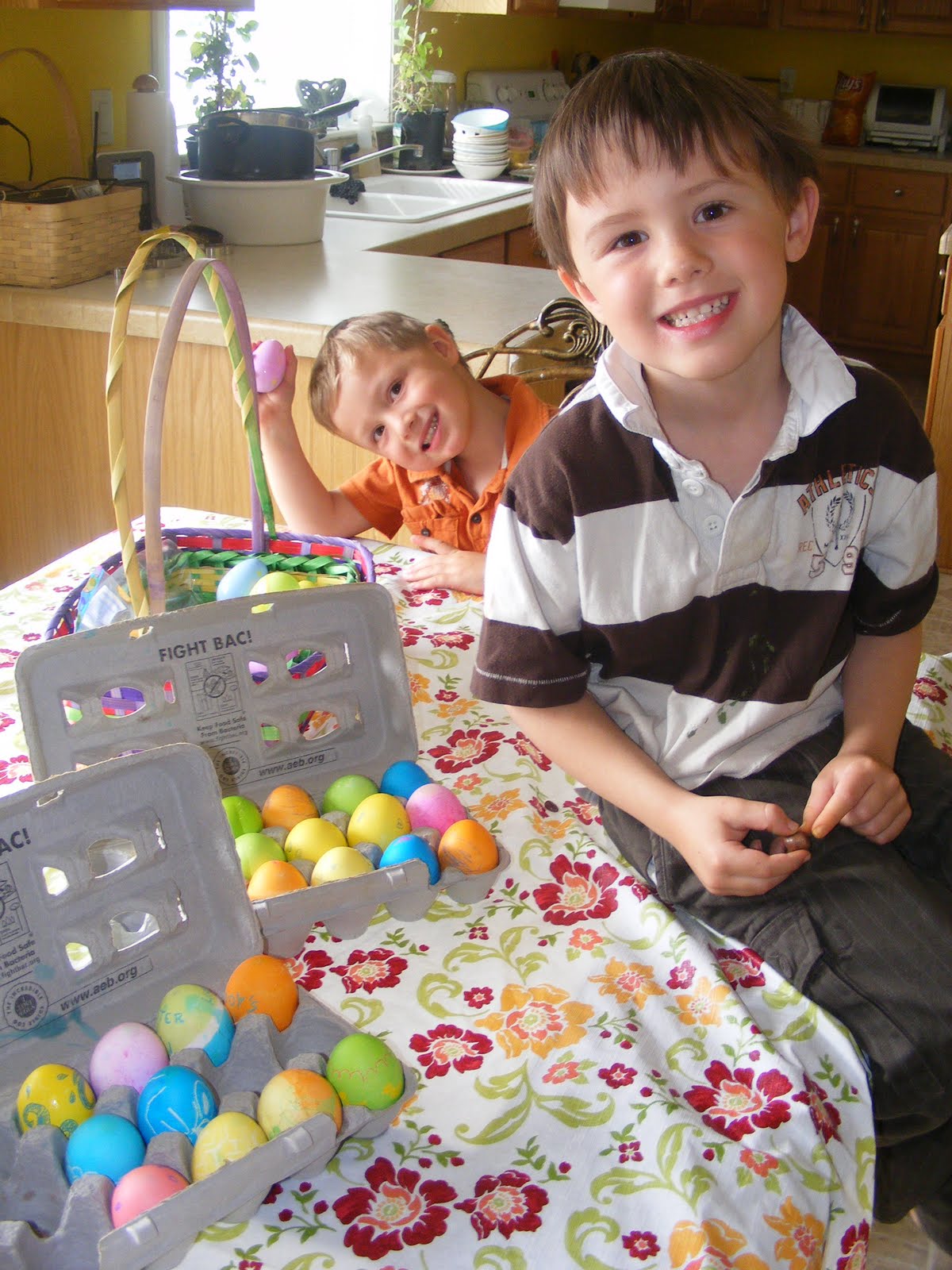 Easter Egg Hunt: After dying eggs we hunt them. There is a bunch of hardboiled eggs, candy eggs, and plastic eggs filled with money or little nicknack’s like erasers or a bouncy ball or something. We usually hide the eggs twice because the kids have so much fun doing it.