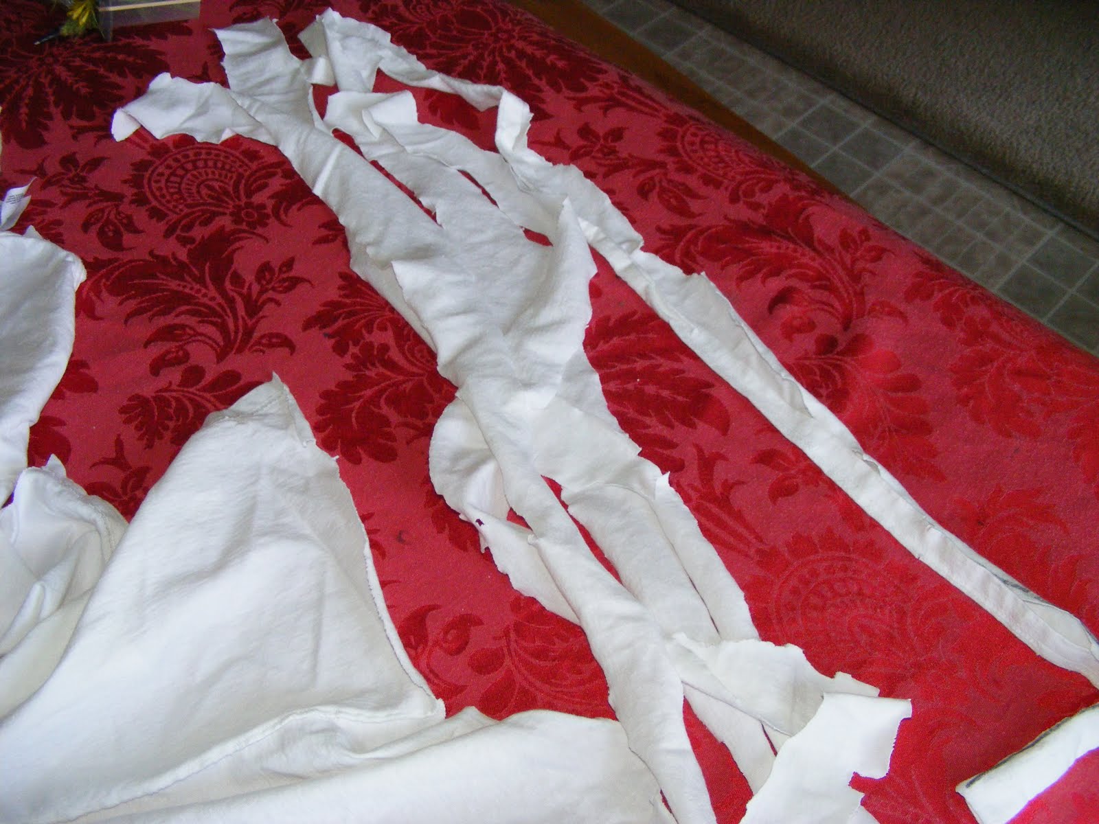 1. Cut out several strips of fabric from the t shirts to make the banner rope. Make sure that you have a length of about twelve feet or more when strips are lined up from end to end. Tie knots into scraps every three to four inches apart, making the strips more durable and giving it a fun flair. Once you have the knots all tied in you can go ahead and tie the knotted strips together with a double knot creating one long rope like strip.