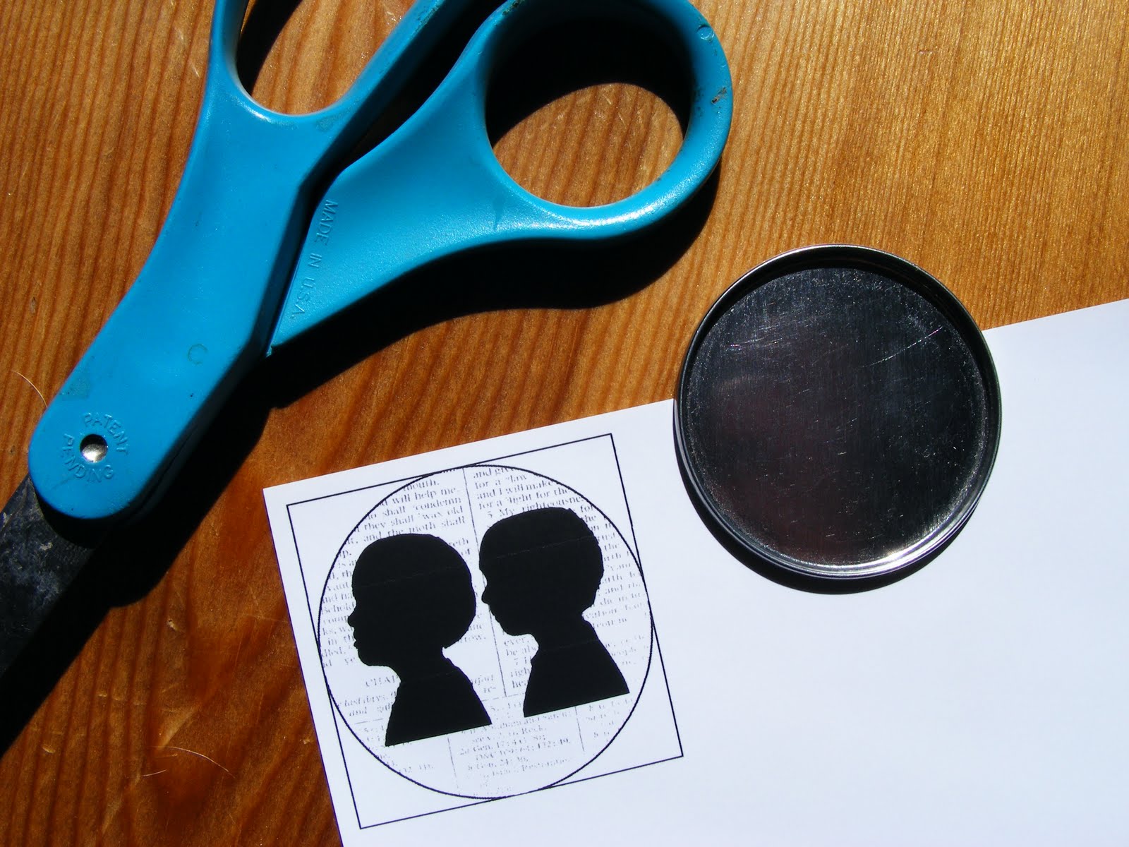3. Once your image is printed, cut it out. Apply a healthy amount of mod podge to back of image to secure the image to the metal lid.