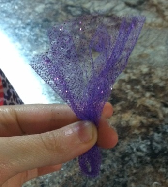 Step 7: Cut a small rectangle of tulle, scrunch it together and fold it in half…