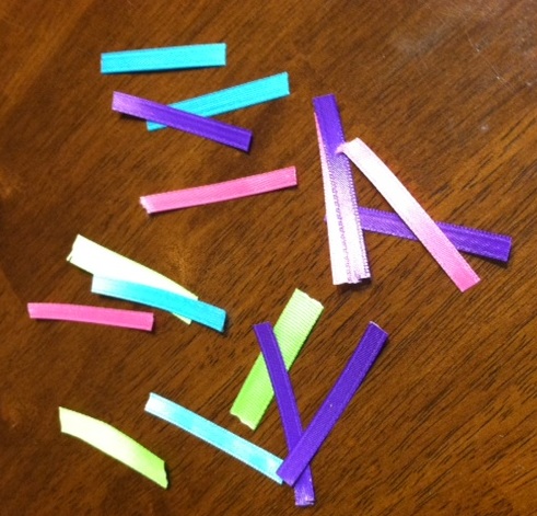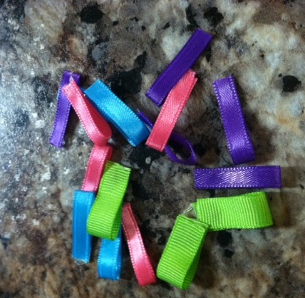 Step 5: cut your ribbon into small strips and glue the ends together to make them into a loop!