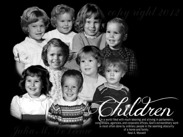 If you are interested in getting a custom “Our Children” print just contact me at everydaymomideas at hotmail dot com. Its starts at just $20 per kid image and you get any quote you want. You also get full rights to the completed design when the project is finished and can print it off as many times as you want for friends and family. There is an additional $10 fee if any damages to the image needs to be fixed. So if all your photographs needs editing repair that will be an added $10 per photograph not per repair.