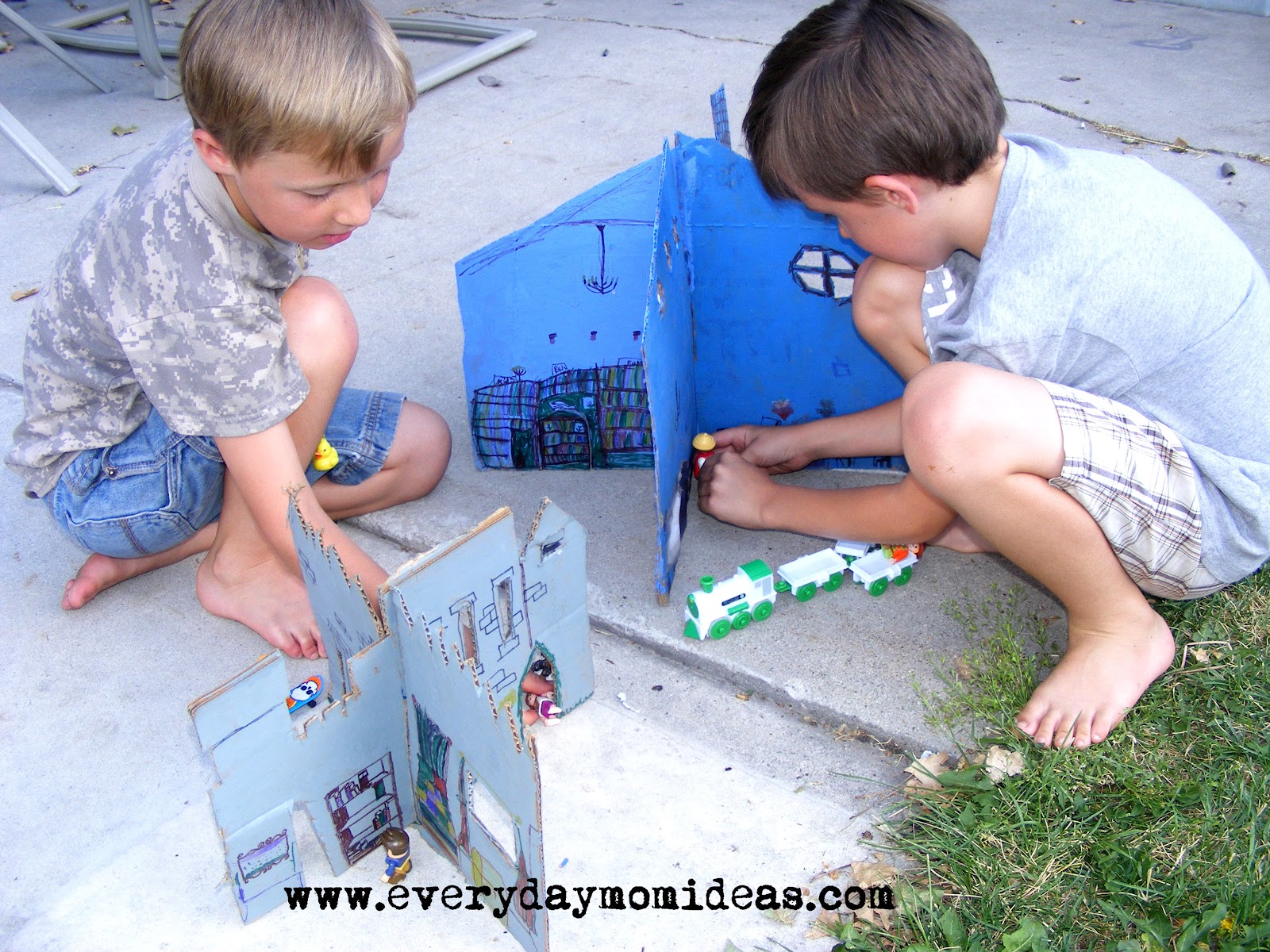 This is the perfect kids craft if you are needing to keep your kids busy for hours! These little interlocking houses cost next to nothing and have endless possibilities. Your kids will love making them and you will love watching thier imaginations go to work.