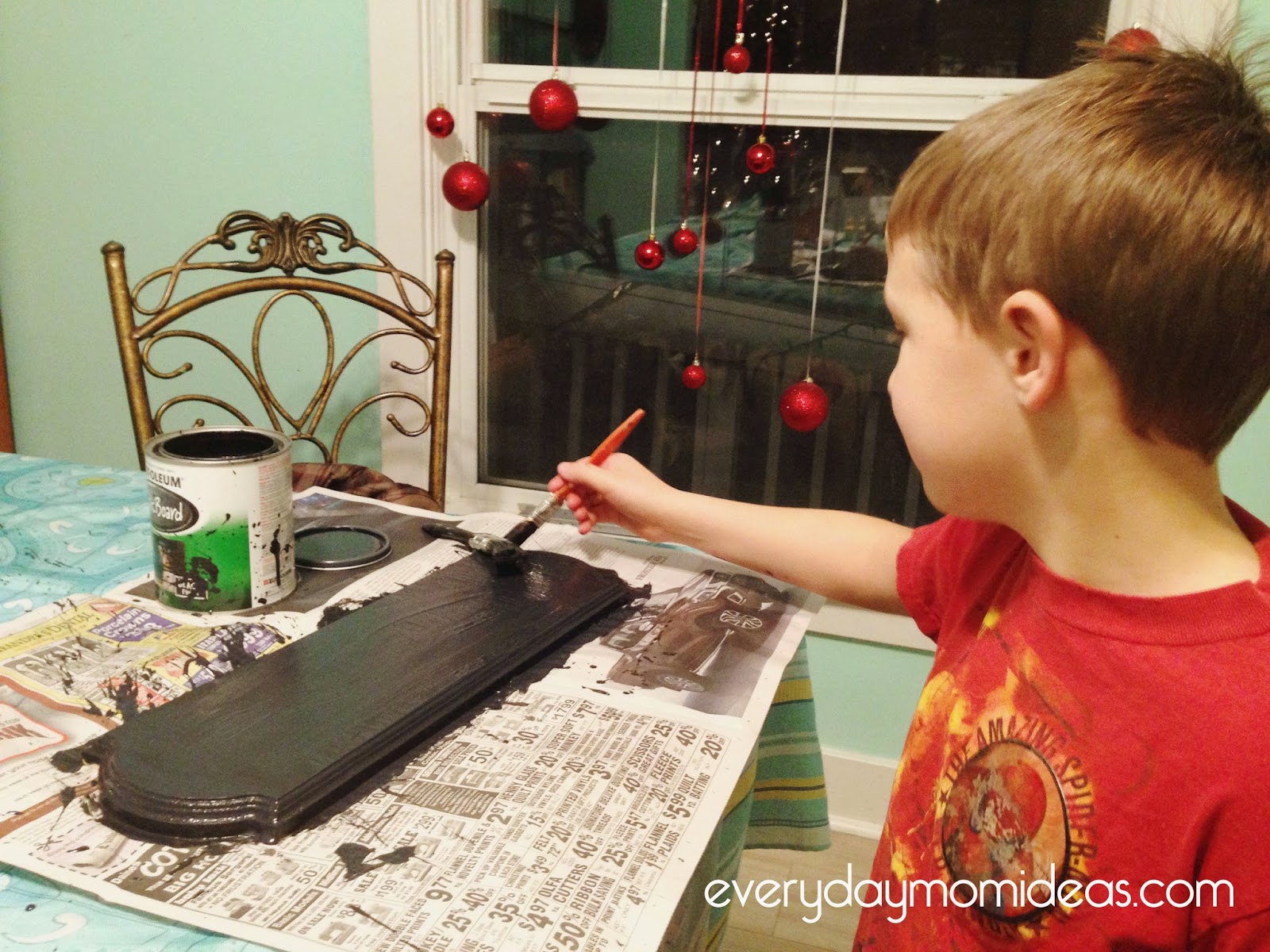 This is all really as easy as it looks. And here is a tip with the chalkboard paint. Not all chalkboard paint is applied the same way. You can even get chalkboard paint in a spray paint. We let our board dry overnight just to be on the safe side.