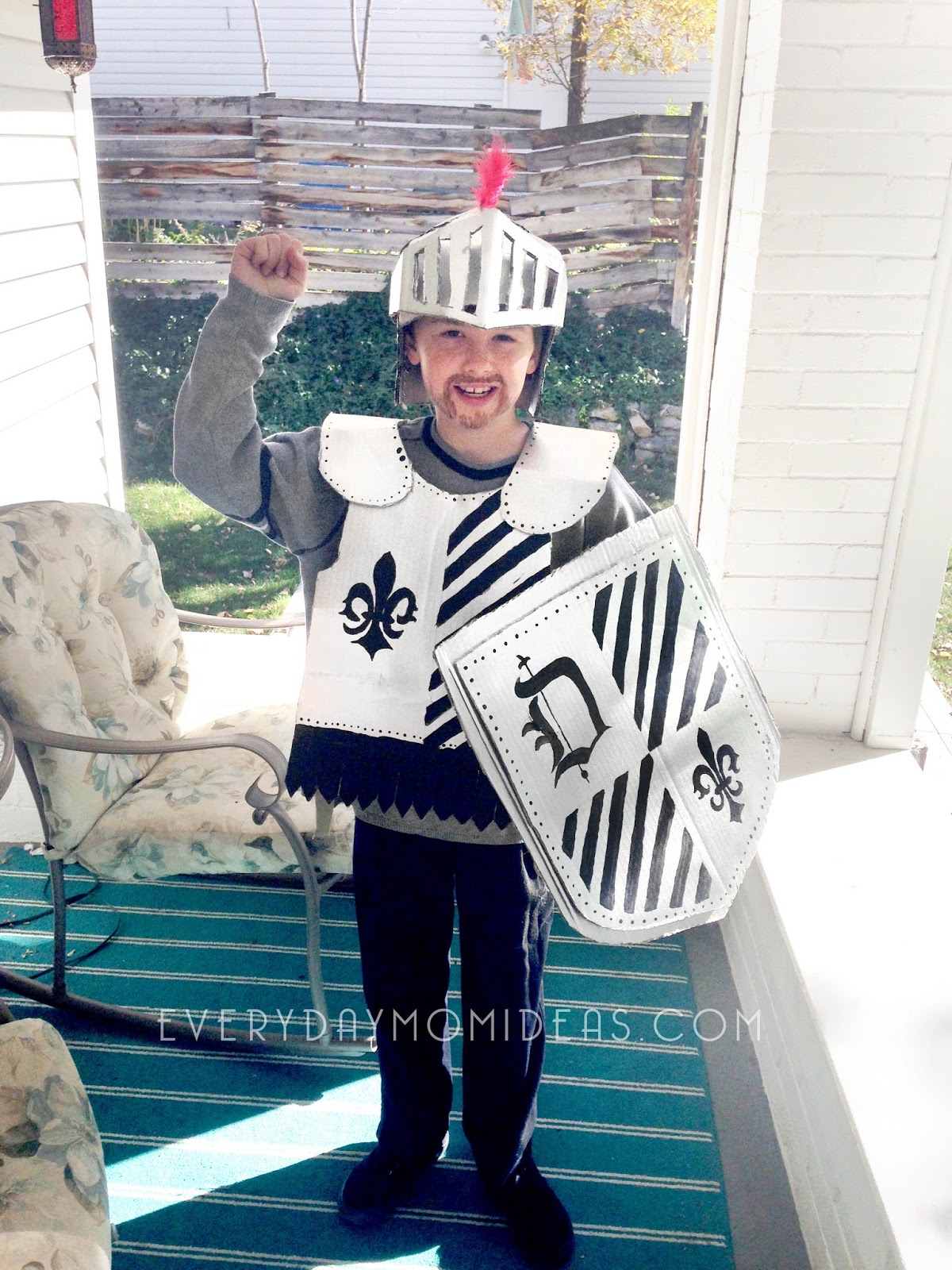My little knight loved making this with me and having a Halloween costume tailored just for him with his initial proudly on the front of his shield.