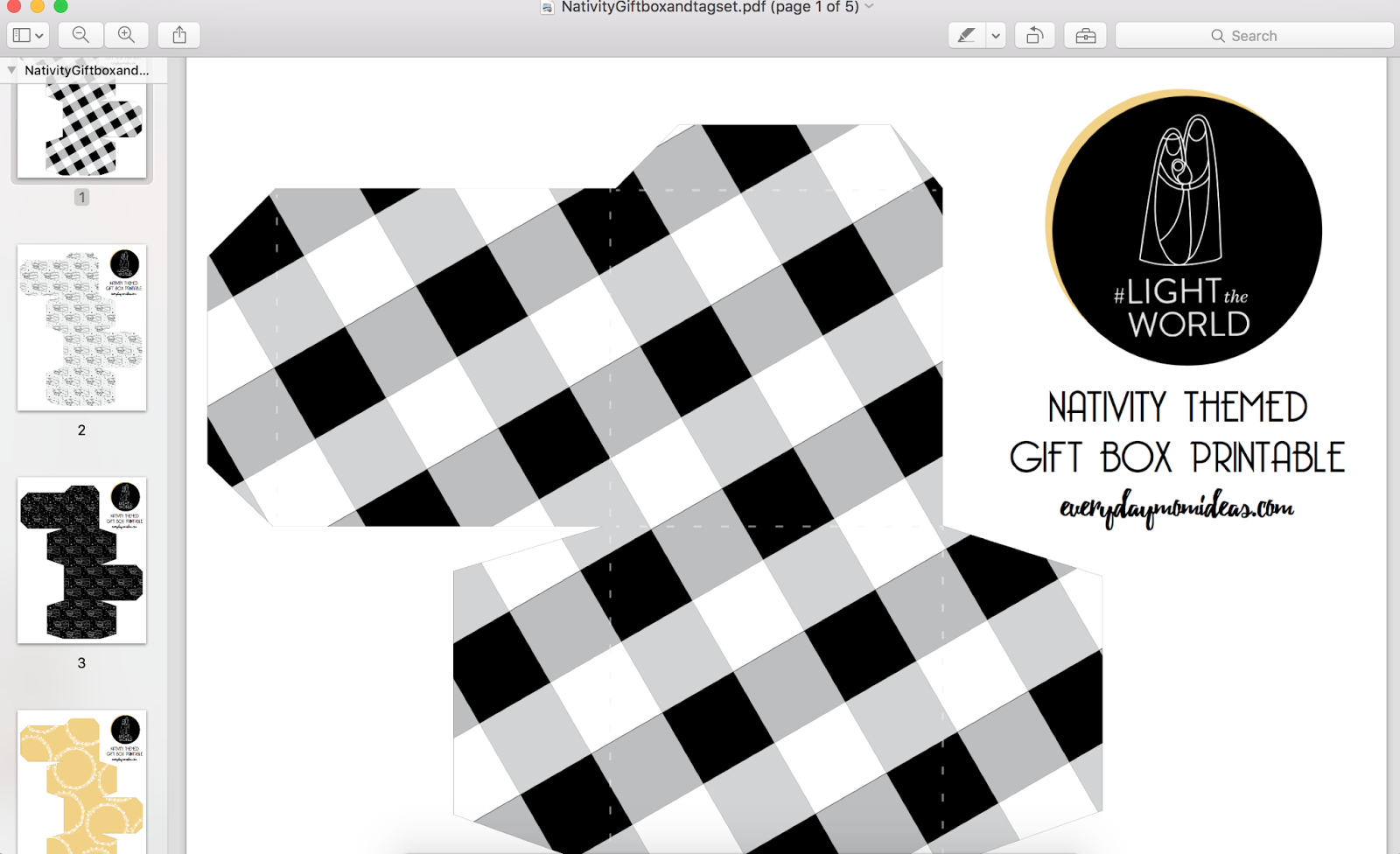 To go along with my Nativity Christmas Gift Tags I made last week Ive also designed these coordinating gift boxes. There are four designs to choose from or just print them all! These gift boxes are great for wrapping little christmas gifts or for stocking stuffers. You also save yourself a trip to the store because you can forgo the wrapping paper with these cute little printables you can print right at home. Don’t forget the matching gift tags!
