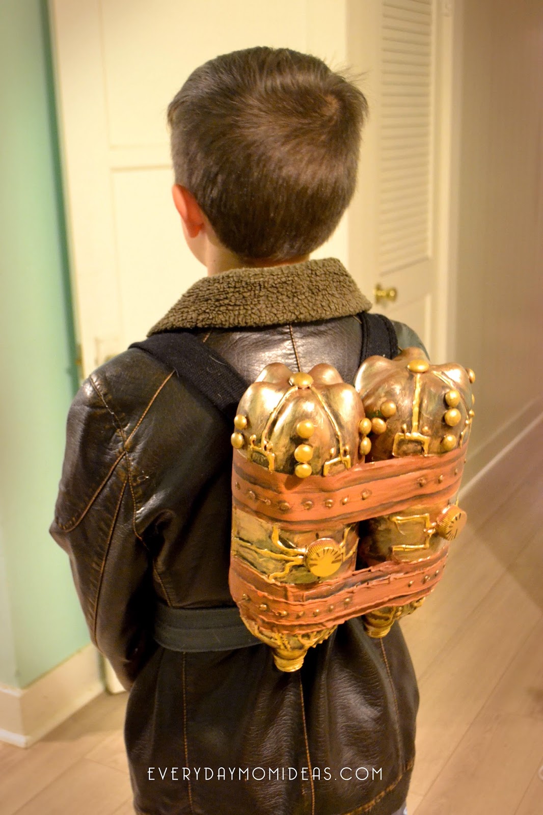 The jetpack unit was a lot of fun to make as well with using two soda bottles, a glue gun, and some imagination. Get the full step by step tutorial for the jetpack here at a previous post.