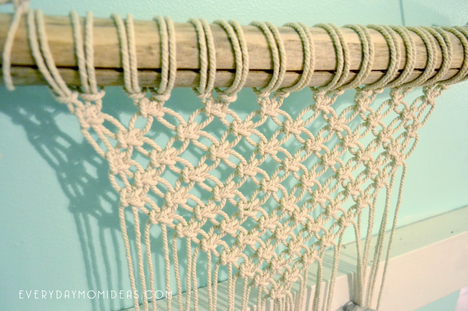 I love moving this wall hanging around my house, so far it has been on the porch, my daughters bedroom, the dinning room and even the tree house. My next macrame project is plant holders!