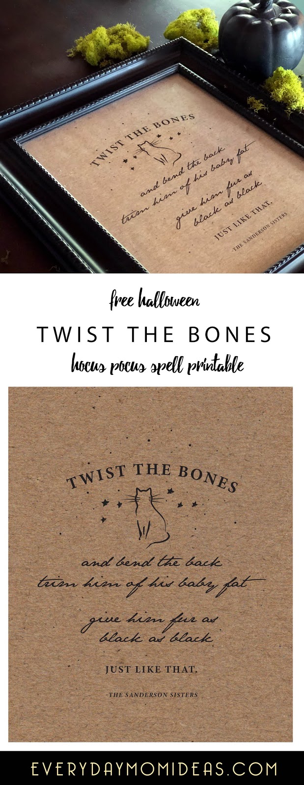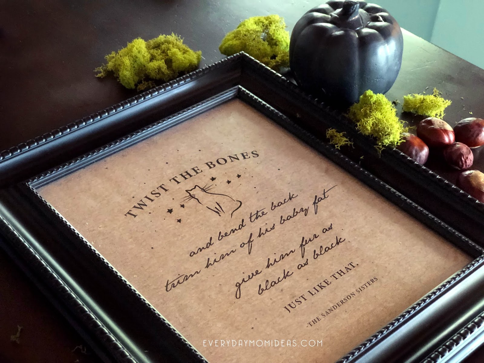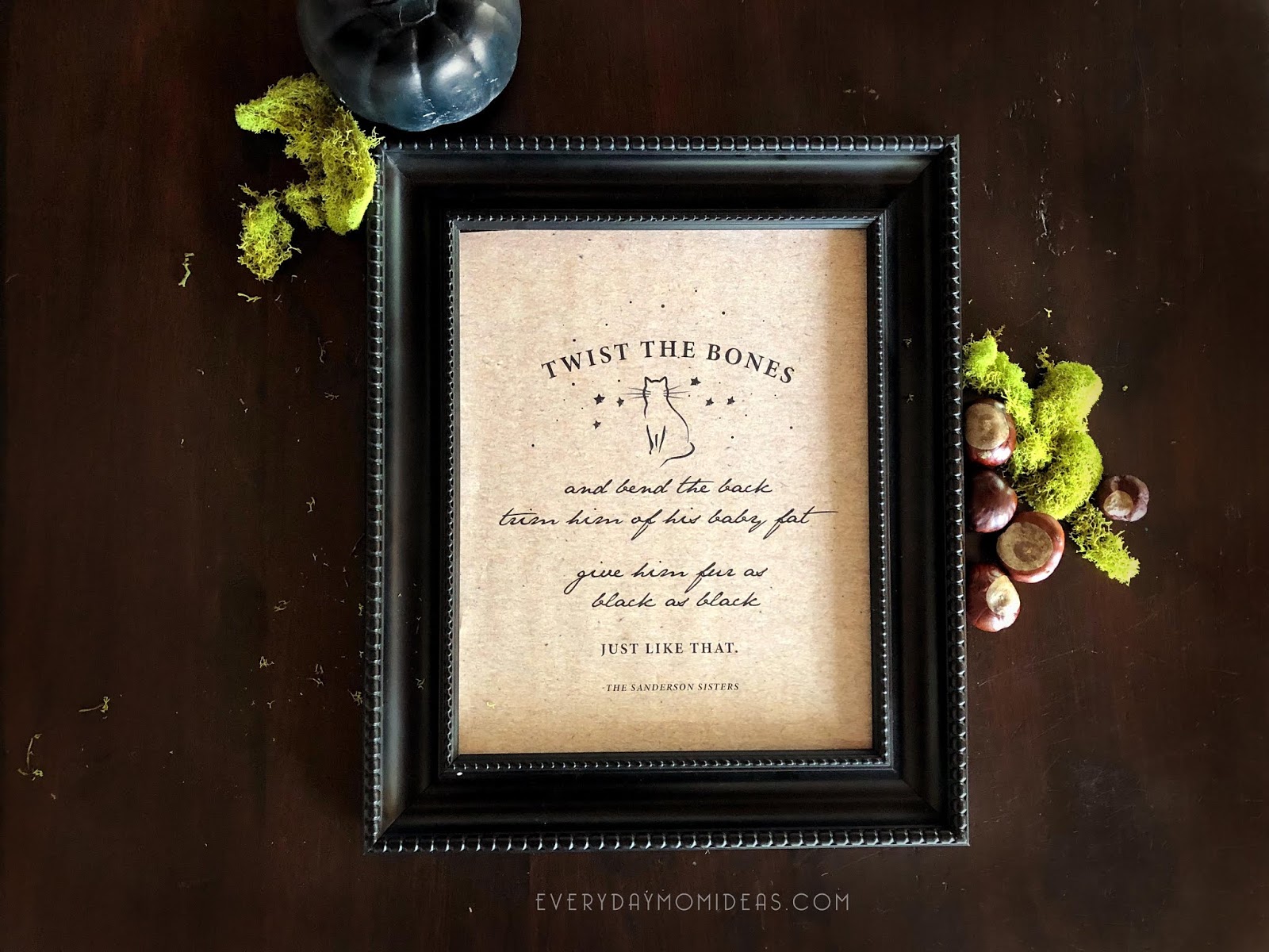 Add a little Hocus Pocus to your Halloween home decor with this famous Sanderson Sisters spell printable. The spell that turns a big brother into a lovable black cat named Jinx.
