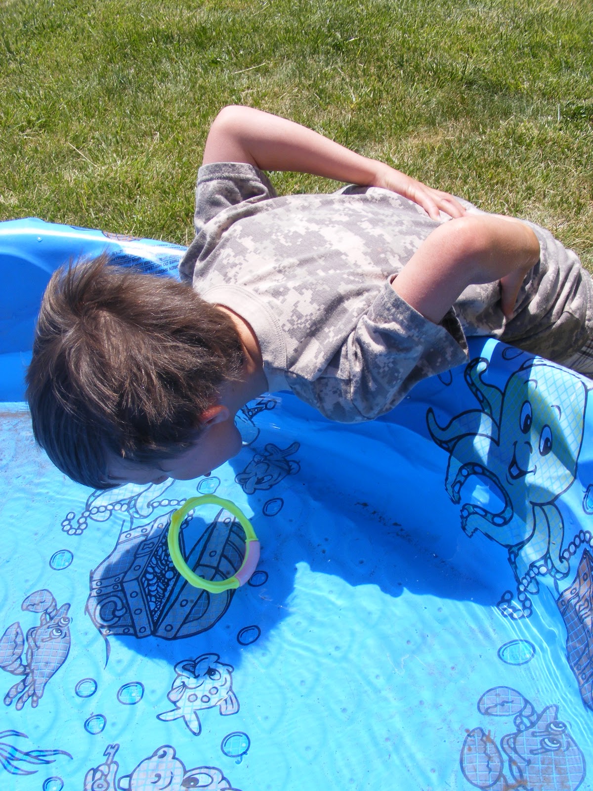 2nd Station: Retrieve either ring or ball from baby pool with mouth while hands are behind your back.