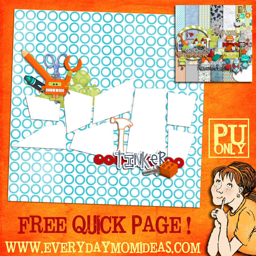 I thought it would be fun to make a quick page for you to download. I created this page from my most recent kit “Tinker” it was inspired by my boys being creative. The Tinker kit is still available for FREE download as well. Happy Scrapp’N! -Julia