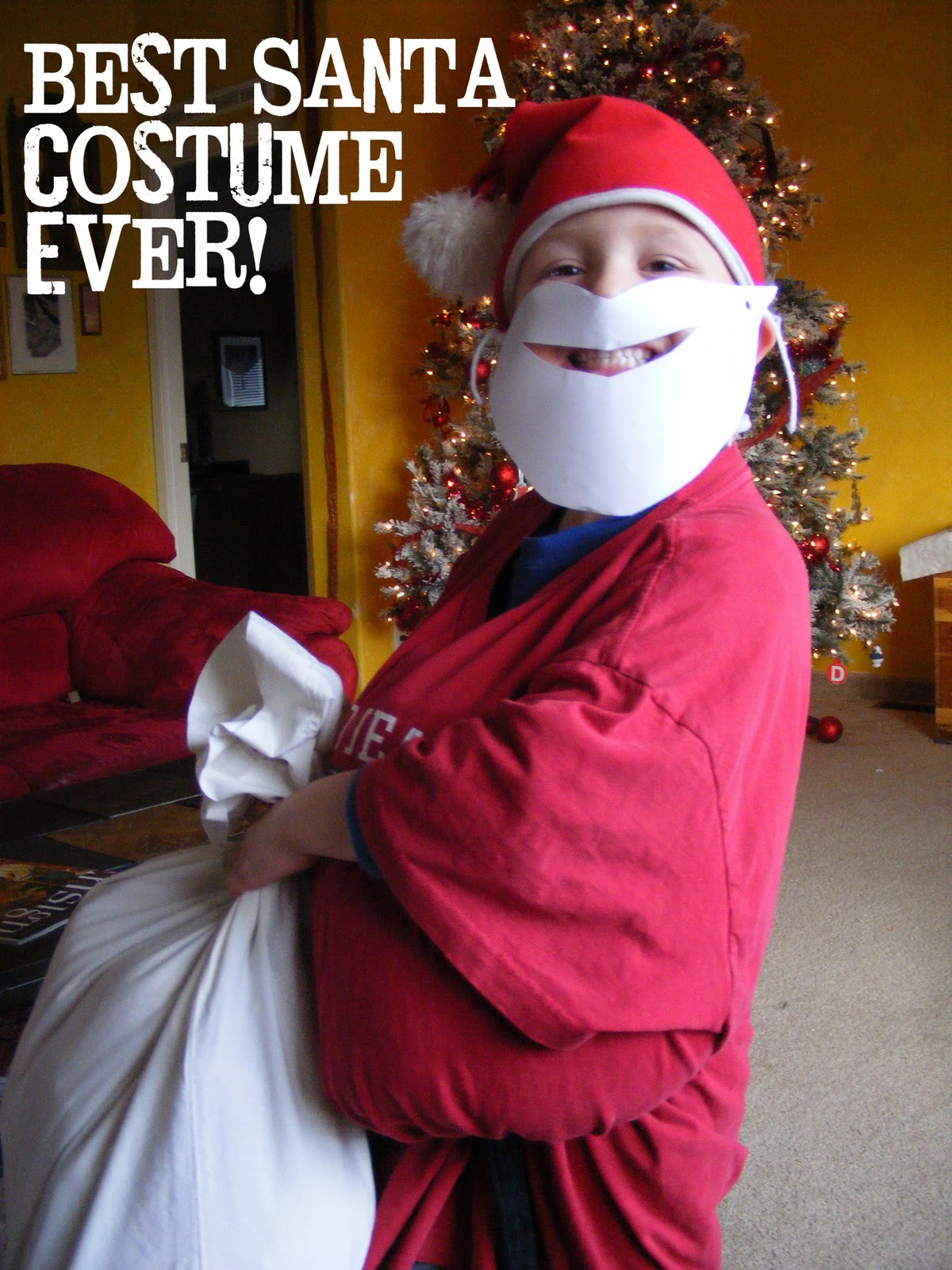 We still have a week until Christmas and we’ve already got a boat load of stories under our belt. This is my four year old in the best Santa costume Ive ever seen! He wanted to play dress up and chose to be a festive Santa. With no Santa gear on hand mom had to do a bit of quick thinking. What do you think? How’d I do?