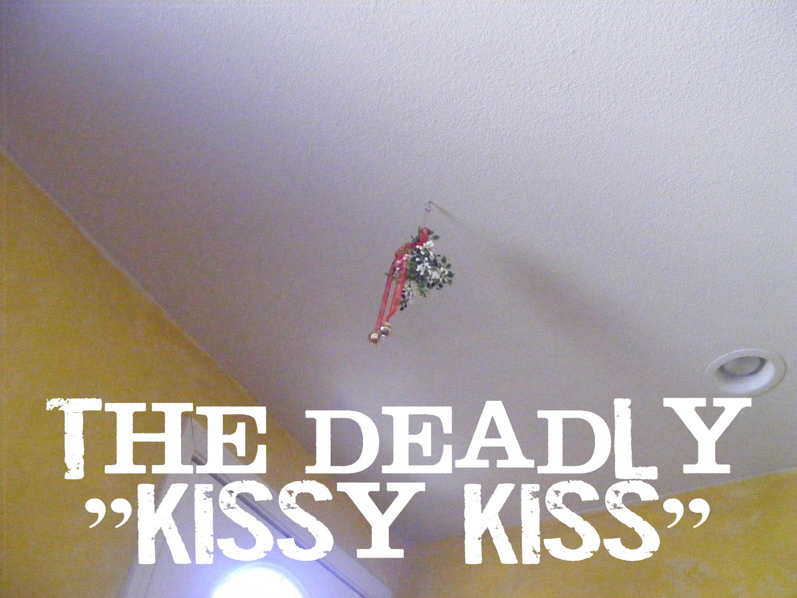 When I hung this up my four year old gasped! “Mom, I know what that is!” I said “Ya its a Mistletoe.” Then my five year old looks at me with big wide eyes and said ” Mom! your under the KISSY KISS!” Then my hubby came running over to give me a big smooch to the horror of my four and five year old boys. I could just see them thinking “So it does work! Eeeks!” Both my little boys have been trying to stay clear of the Kissy Kiss all month long. If anyone happens to venture under it they are sure to sound the alarm “They are under the Kissy Kiss! They are under the Kissy Kiss!” Running around the house like crazy.