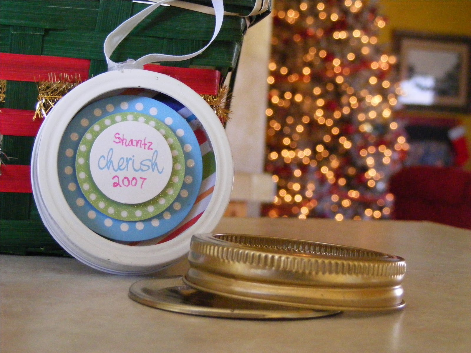 - When your all done decorating the jar lid. Hot glue some ribbon on back for a hook. And you’re done.