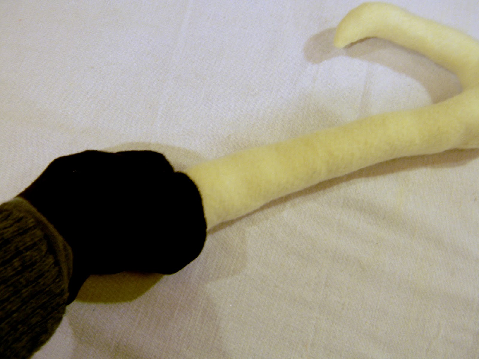Remove the black cuff fabric and continue the hook drawing straight down to the bottom of the felt.