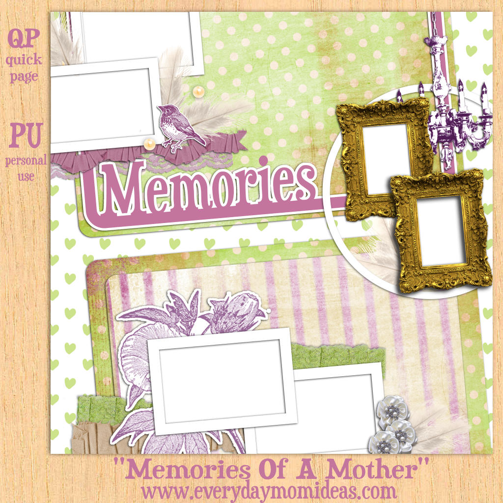 This was a fun layout idea that I used with my “Memory Of A Mother” kit in celebration of mothers day this month. This digital scrapbooking quick page is available to download for free.