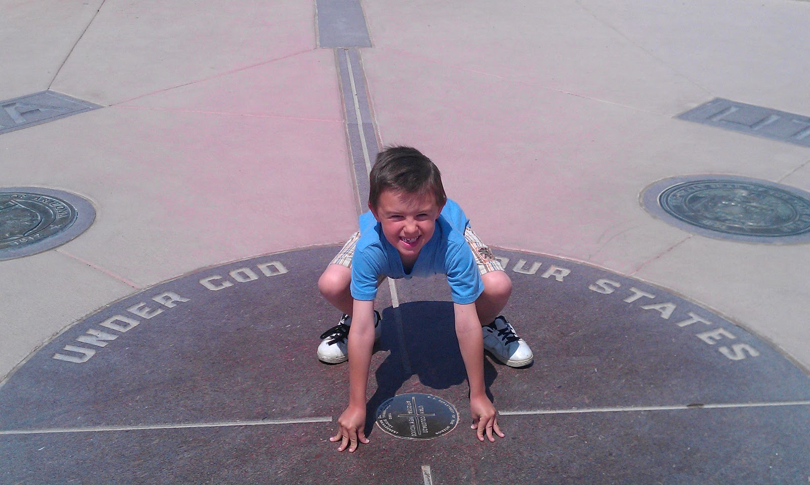 Last but not least, we stopped in on the four corners and each took turns being in four states at once. They have these neat Indian stands all around. Fun place to pick up souvenirs.