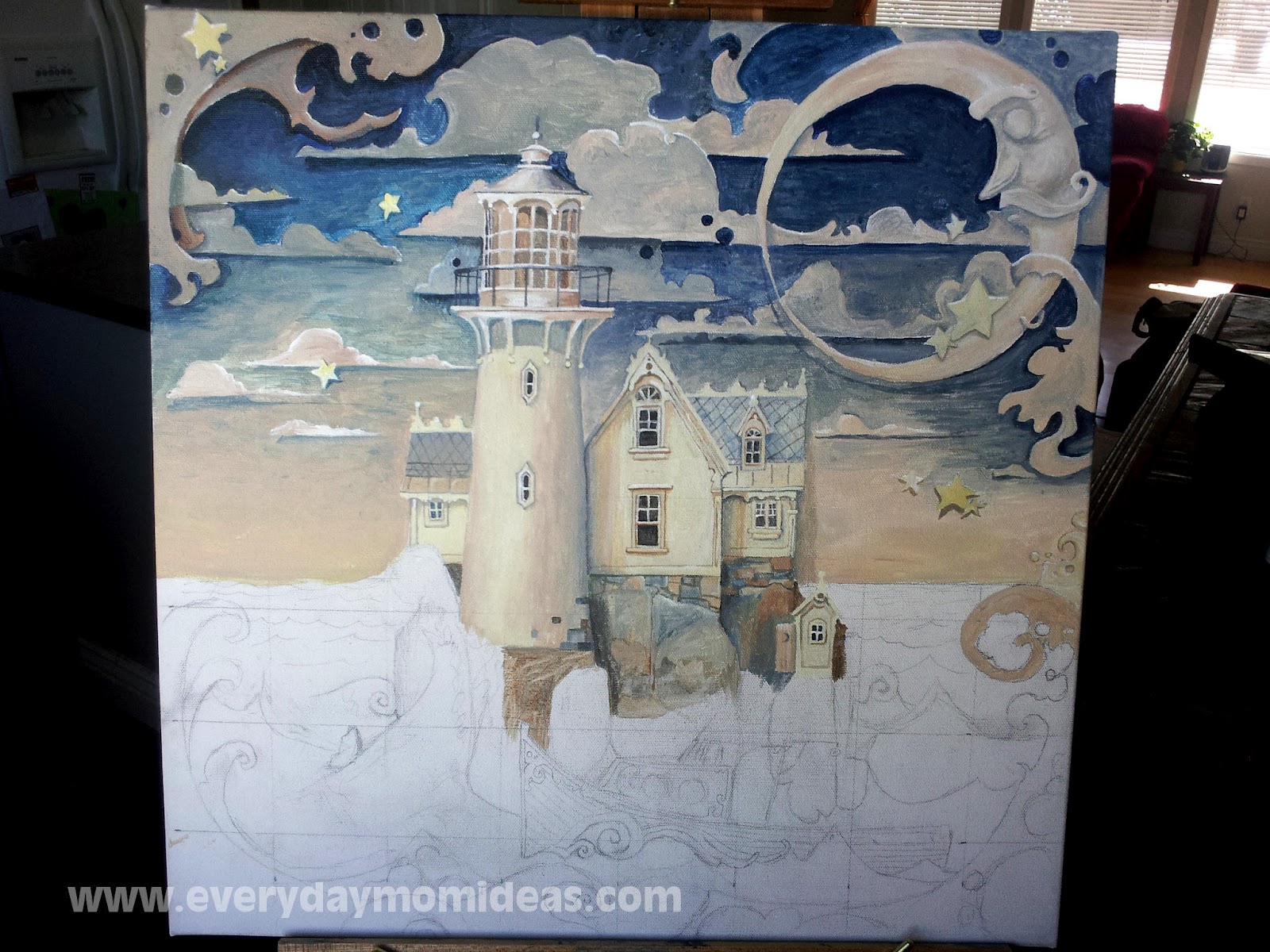 I of course was not thinking very rational at the time and picked one of my favorite artist for this “Master Recreation” project. I am just in love with his light house painting. I just wanted to do something that I loved, and did not think about the amount of blood, sweat and tears that would inevitably have to go into trying to paint something like this myself.