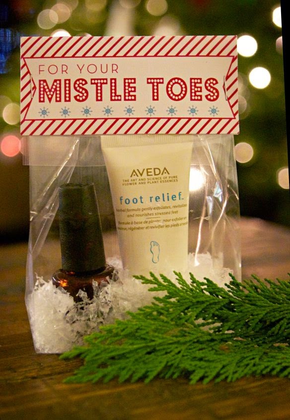 “Mistle Toes”!!! What a super cute gift idea for any girl in your life. You can really personalize this with your friends favorite color, lotion or add extras like a nail file and nail stickers. You can also get the cute tag label printable for free at Ivy In The Bay.