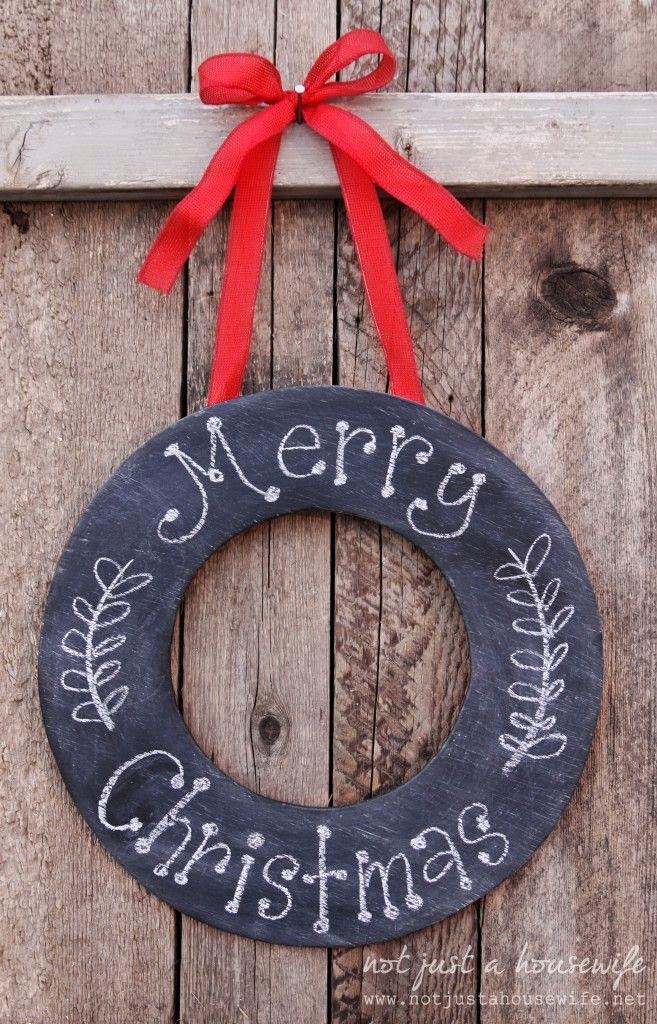 Chalkboard Christmas Wreath!!! Love it! So Clever! I bet you could do this with cardboard.