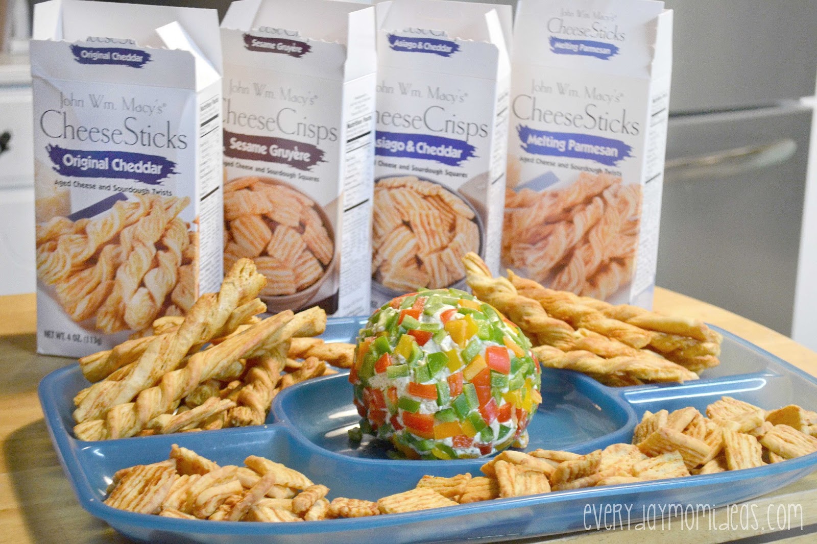 One of my favorite treats I like to make for any party is this Festive Peppers Cheese Ball! Its so much fresher than other cheese balls and easy as well! Don’t forget to pair it with some amazing cheese crackers! My family and I recently discovered these Cheese stick crackers and we are in Love! John Wm. Macy’s gourmet cheesesticks and crisps liven up just about anything you can think of to dip them in and are so tasty! They also have sweet sticks that would be perfect to go along with a hot chocolate station at your next get together.