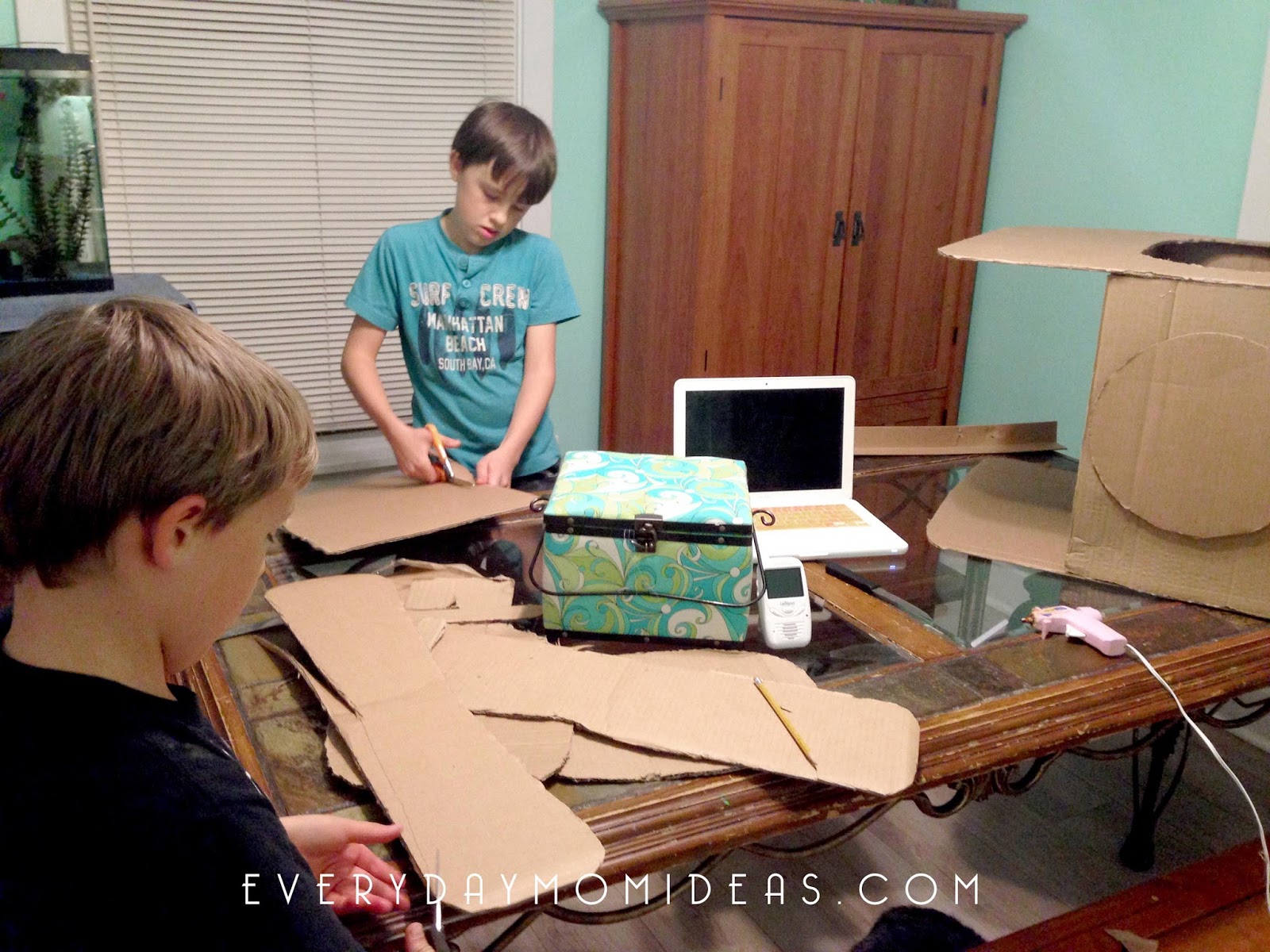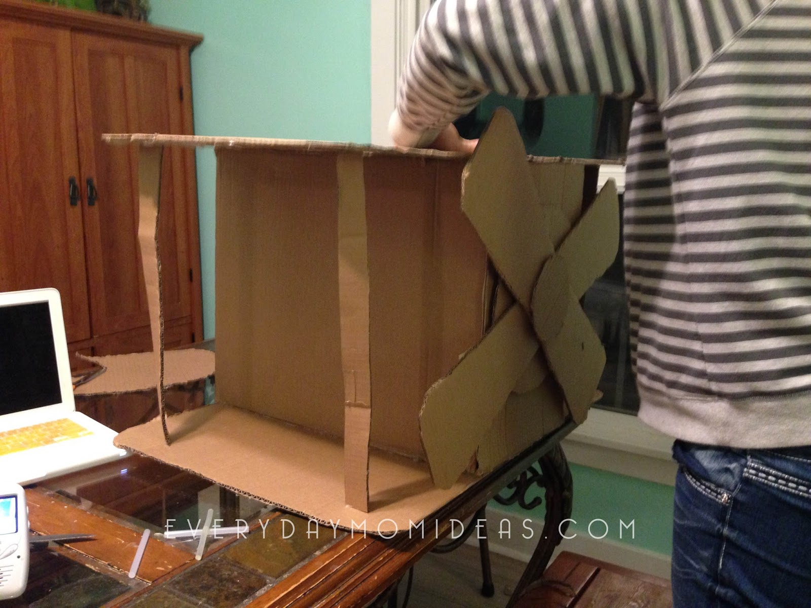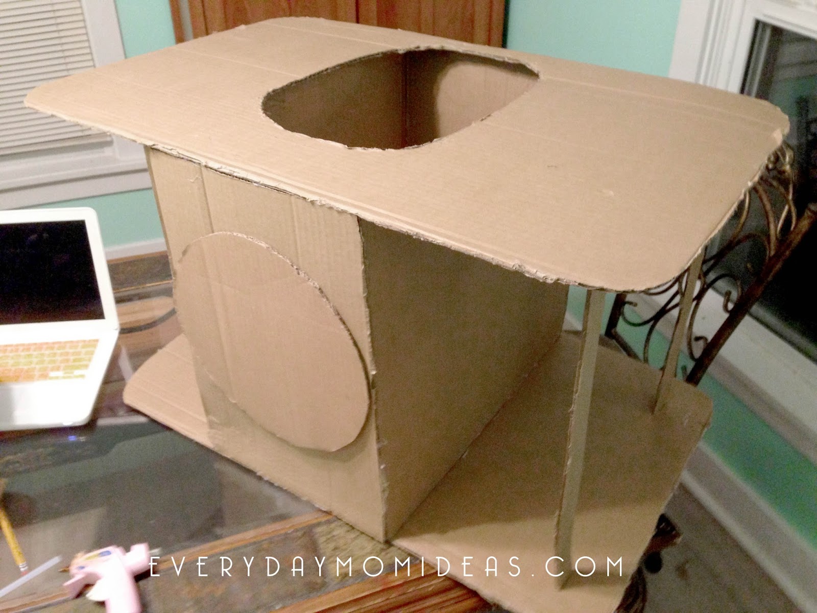 The body of the plane is simply used with four sides of cardboard glued together. You could also just use a smaller box for this portion of the project.