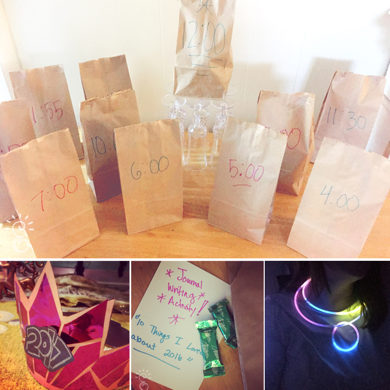 We started early at four in the afternoon. My kids were restless and I wanted to give them things to do to start to get excited about the night ahead. We started the night out with writing in our journals ten things we loved about the year. This is a positive first activity for kids five and up and a great way to reflect on the past year.