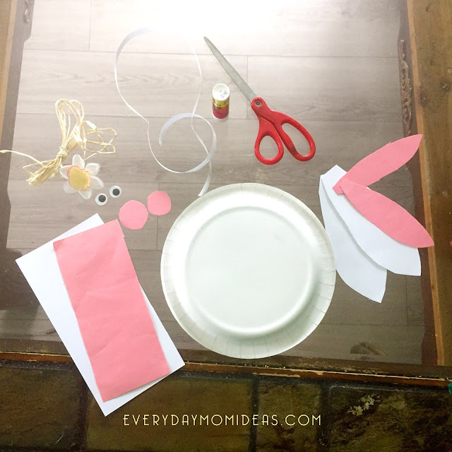 Need: Colored Construction Paper, White Paper Plate, Goggly Eyes and Ribbon