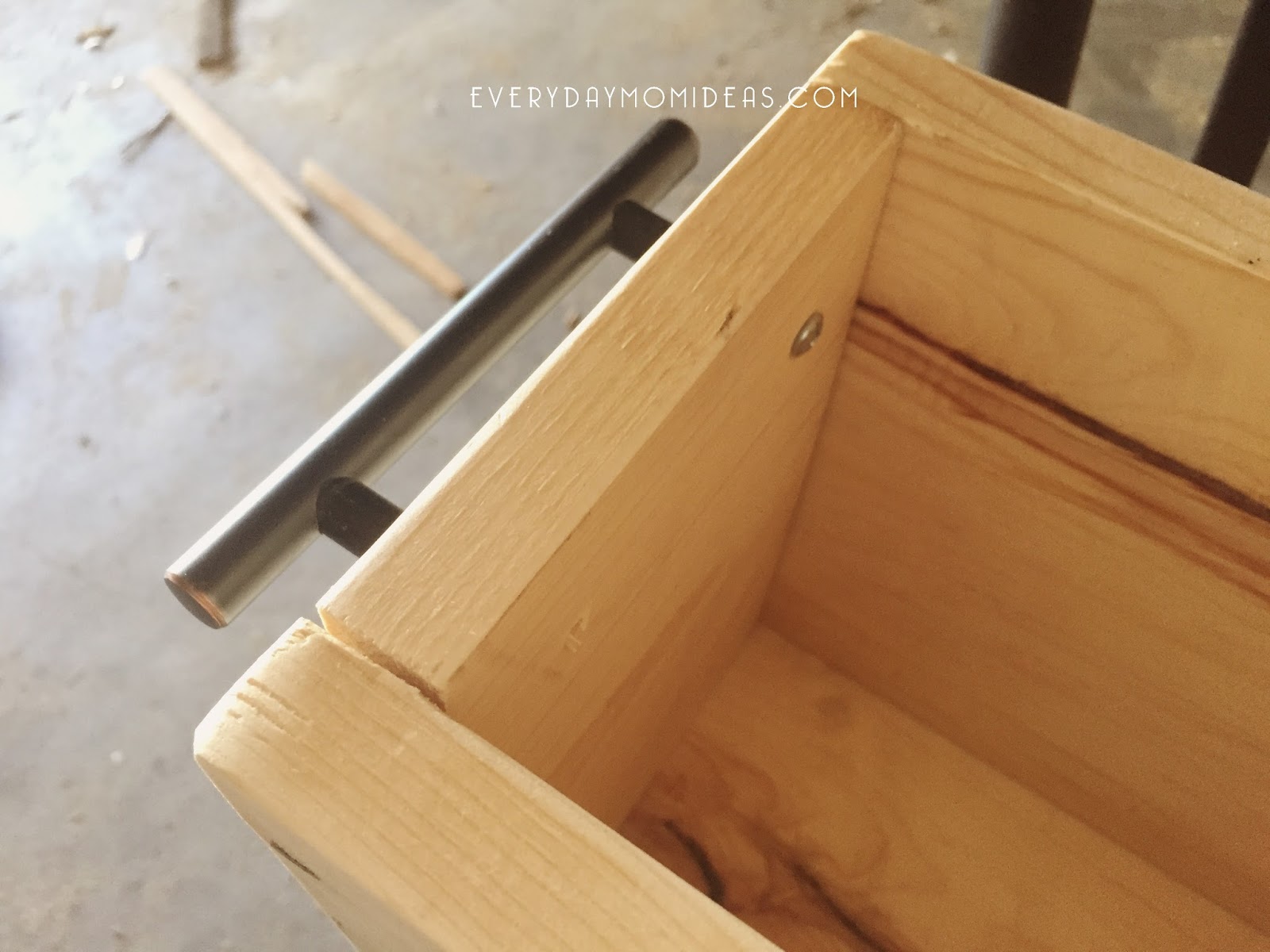 I left my wood raw because I liked the more modern look to it. But this entire box’s style can easily change by adding a wood stain and different handles. There are just so many possibilities with this fun woodworking project. If you would like to protect your raw wood look a little bit better you can always try spraying it with a finishing spray or waxing coating.