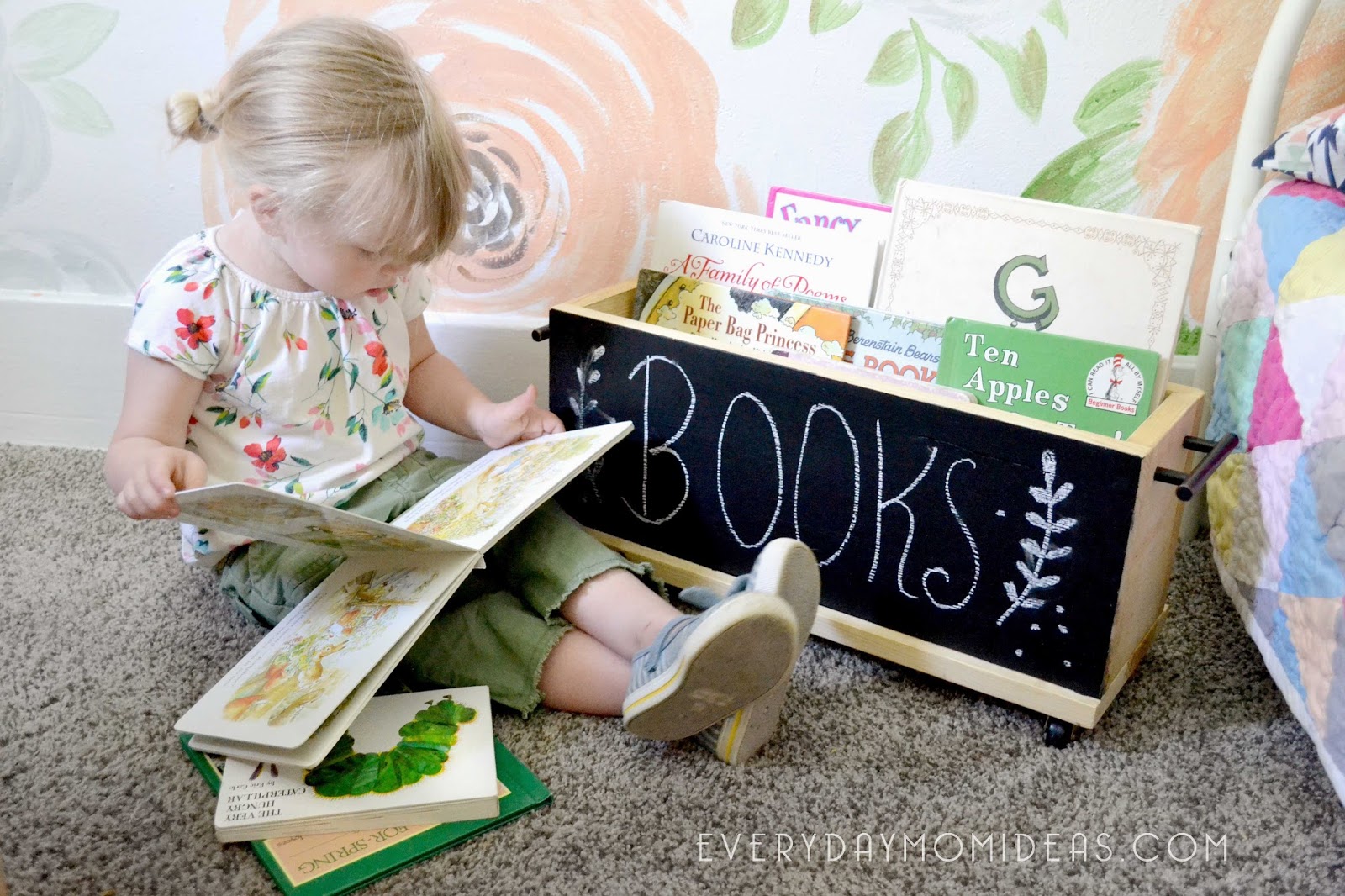 This is a great book organizer not only because its super cute and cool but its great for toddlers and little ones because they can easily get their books out and put them away. And because this book organizer is on caster wheels its easy for them to move around for easy cleanup and storage.