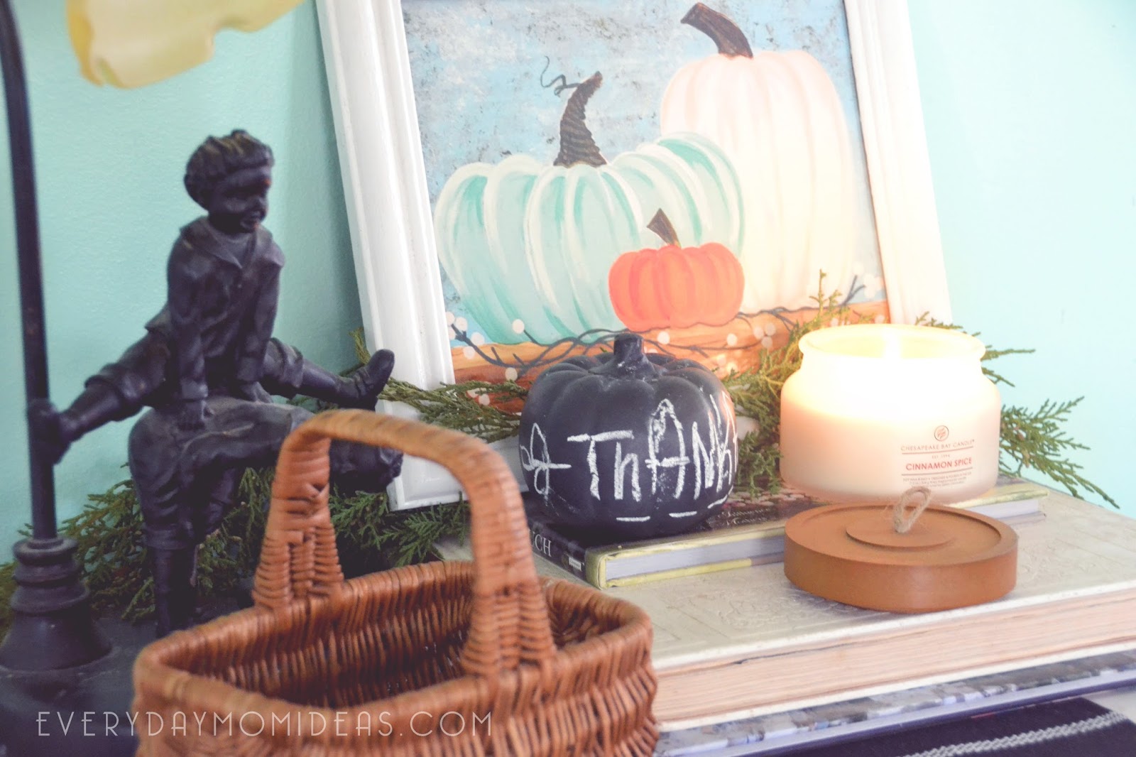 I love that this whole look can easily be transitioned over from Thanksgiving decor to Christmas decor. Remove the Mayflower and add a nativity and there you go. The Chesapeake Bay Candles really go with everything. I use them in just about every room in my old historic home and they only add to the warmth and decor. You will be amazed by the thoughtfulness put into every scent combination and craftsmanship and quality of the candle itself.