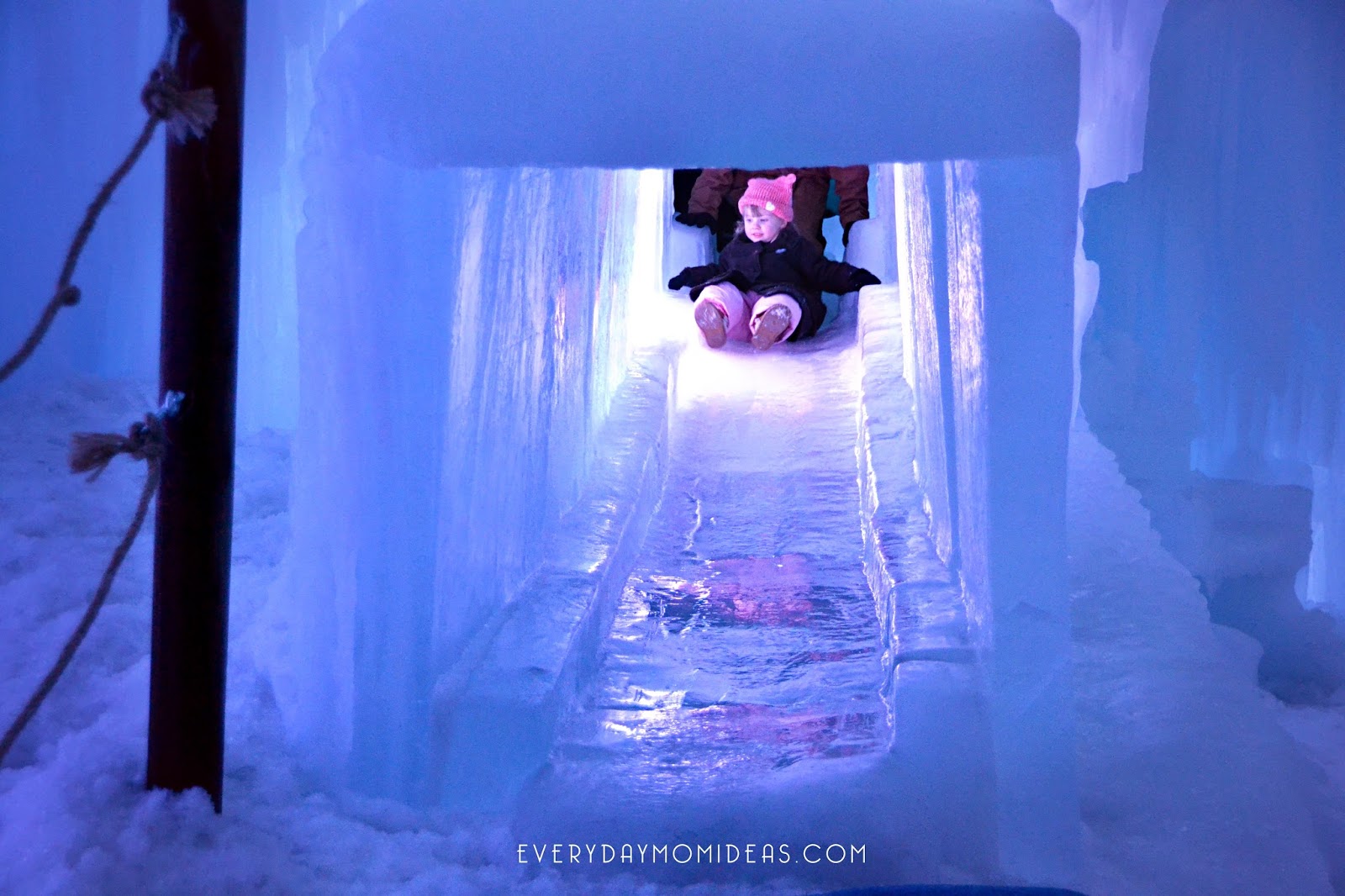 The slides were the first things the kids begged us to go see. I even got in on the action and just had to slide down an ice slide. The slides are located in different areas. There are smaller ones for anyone who wants to go down them and then there are two bigger ones that are a little faster that you go down on matts. Those are probably best left to ages five and up.