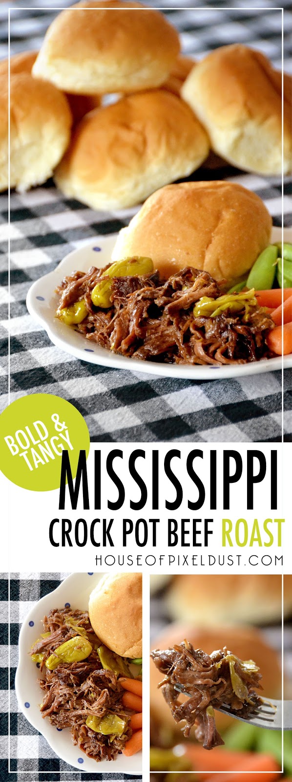 This Bold & Tangy Mississippi Roast is a recipe from my lovely Mother in-law’s cookbook she gave us a few years back, its one of our favorite Christmas presents ever with many of my husbands childhood favorites in it. The Pepperoncini (banana peppers) are what give this post roast its unique bold new flavor and we just love to make this version of Pot Roast for special occasions and parties. Its always a crowd pleaser and super simple to make in the crock pot.