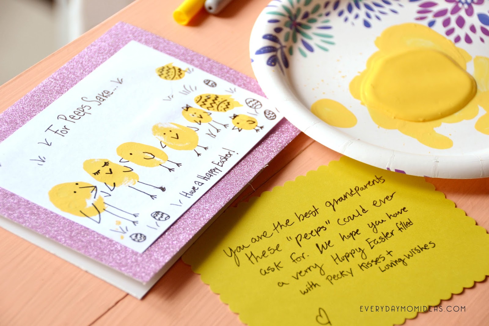 TIP: you may want to make a few of these cards at a time just in case one of them gets ruined. Especially if you have a big family like mine and its hard to round everyone together for a craft all at the same time. 😉