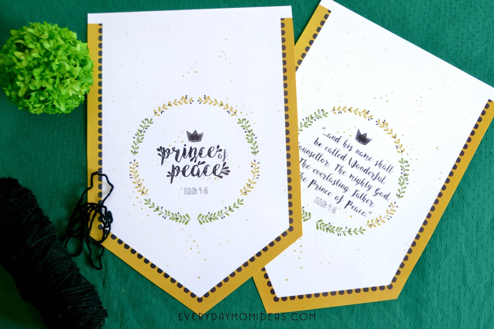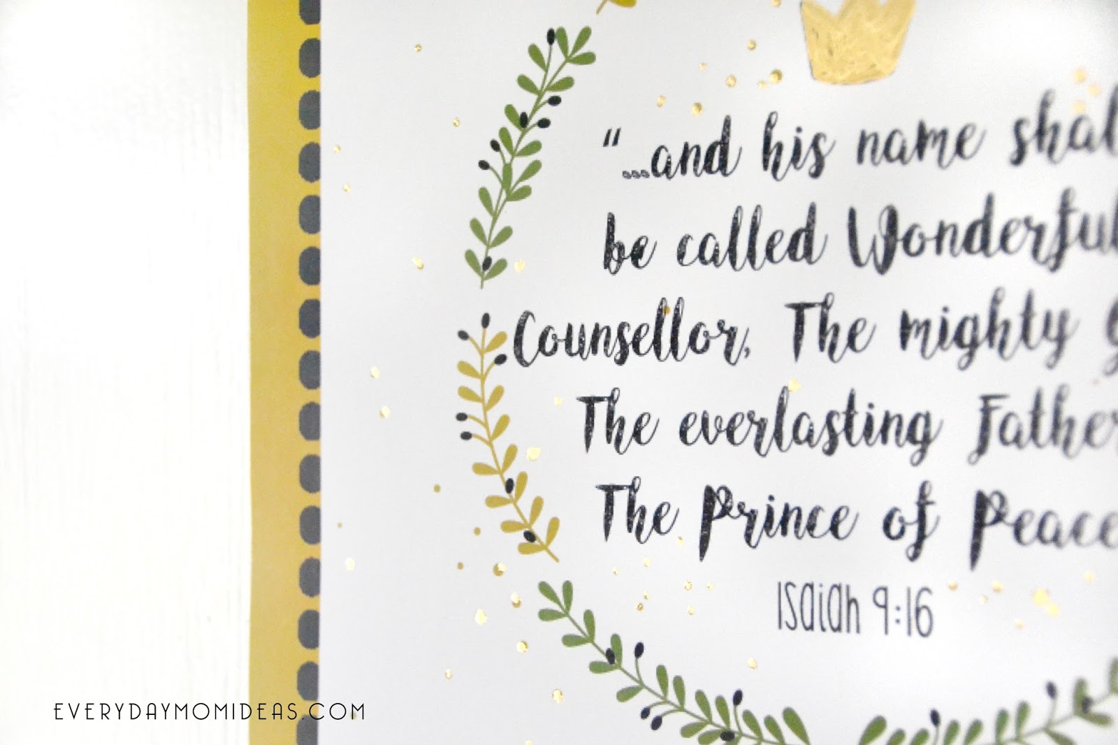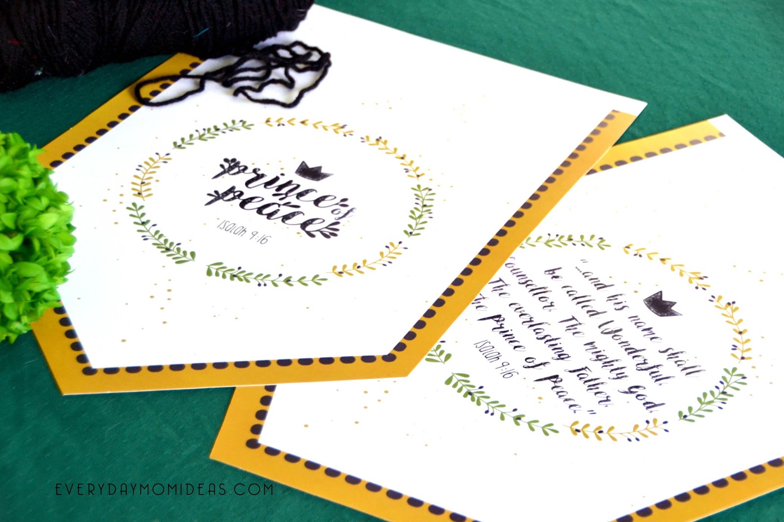 This printable comes with two prints. One with the words prince of peace and the other with the scripture from Isaiah 9:6