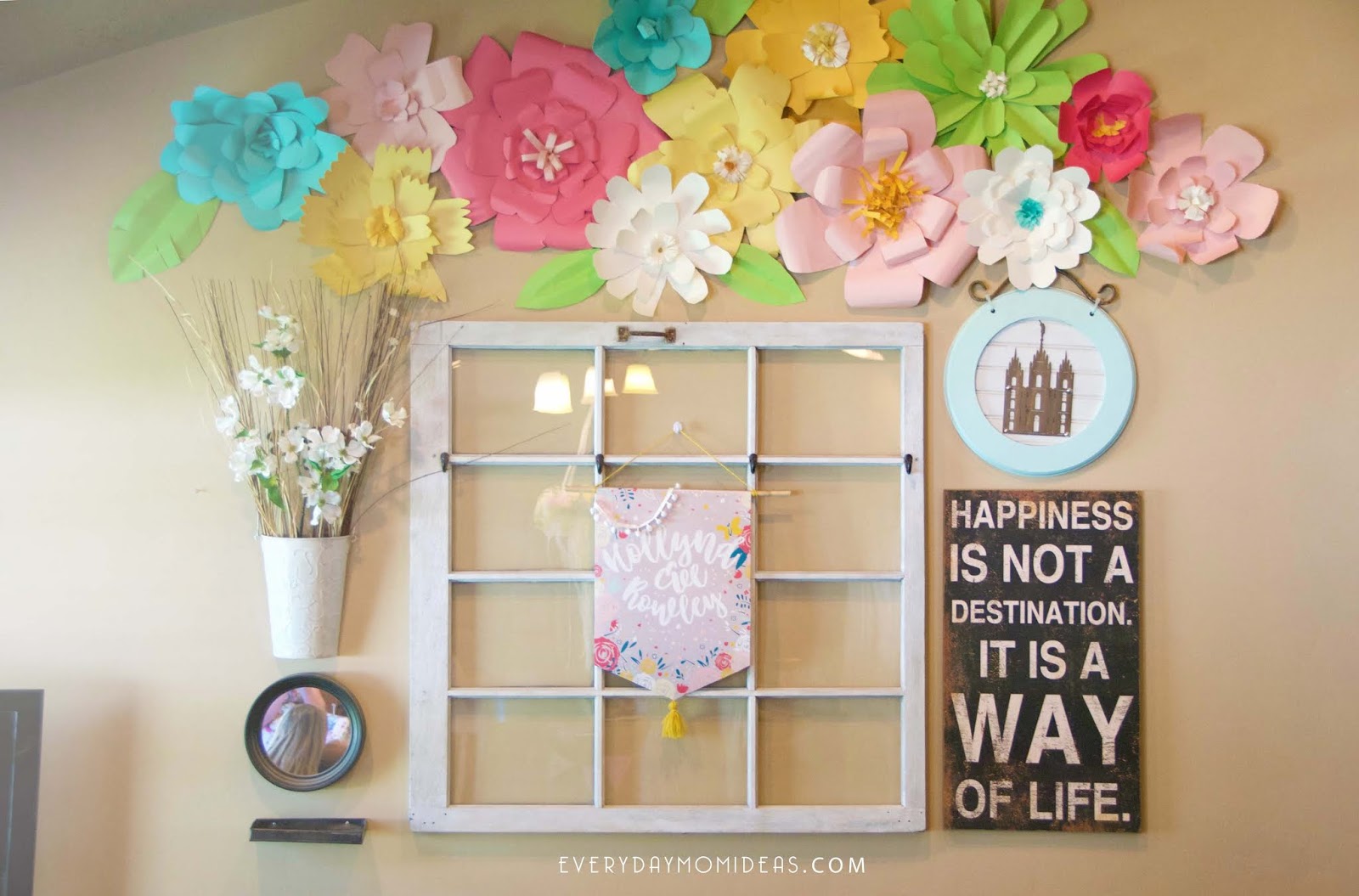 The floral banner I designed comes with a large print and a small print depending on what you like you can print one or the other. I printed both and alternated the small and big printed flags for a more eclectic look.