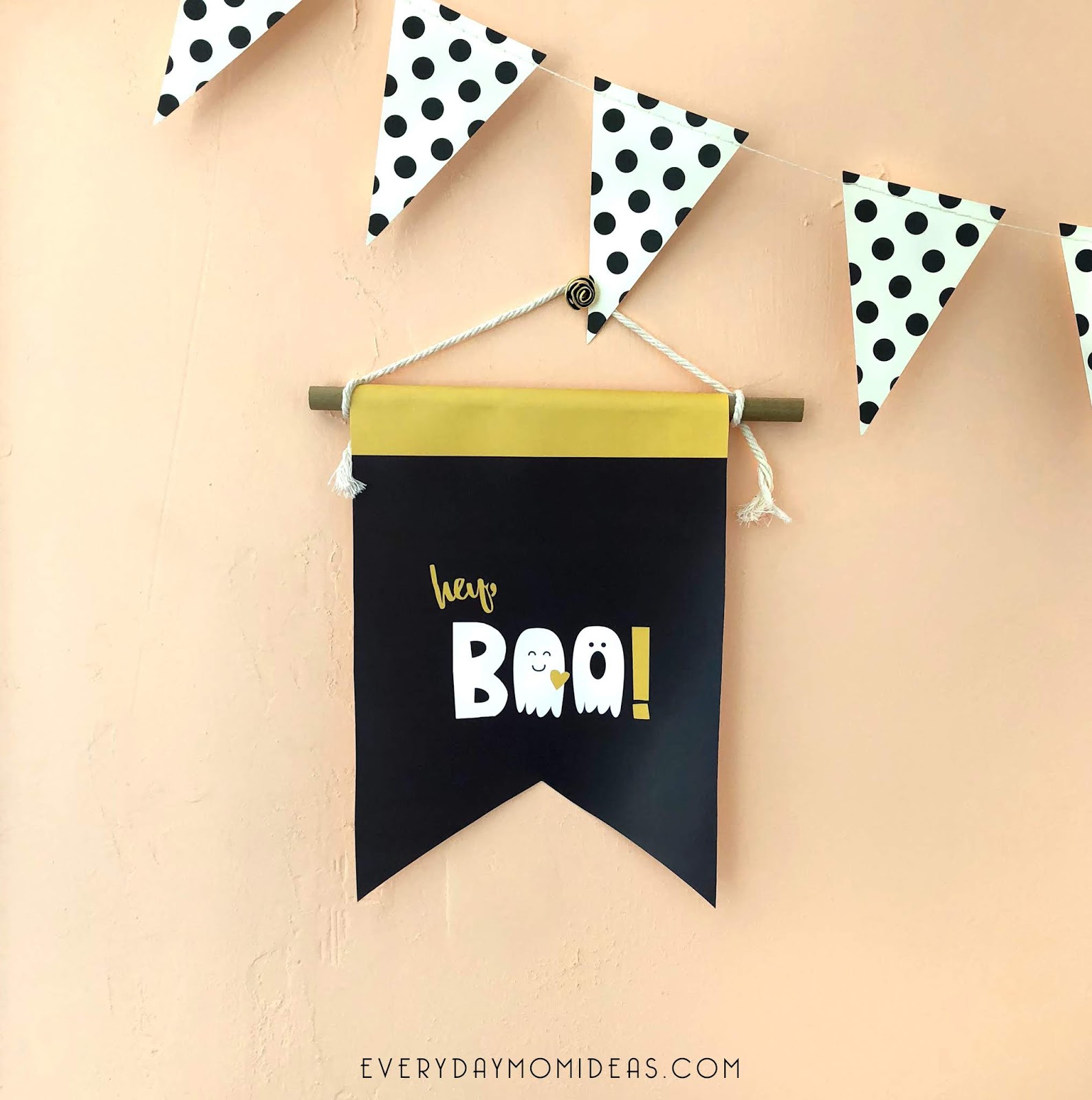 Hey, BOO! You can download and print this modern Halloween printable here at Everyday Mom Ideas. This Hey Boo printable makes for a perfect low-cost Halloween craft for kids or adults. There are five colors to choose from, flamingo pink, mustard yellow, peachy pumpkin, goblin green, and witchy plum. So there is a color for every decor and personality! And its all for free because I love to spoil my readers!