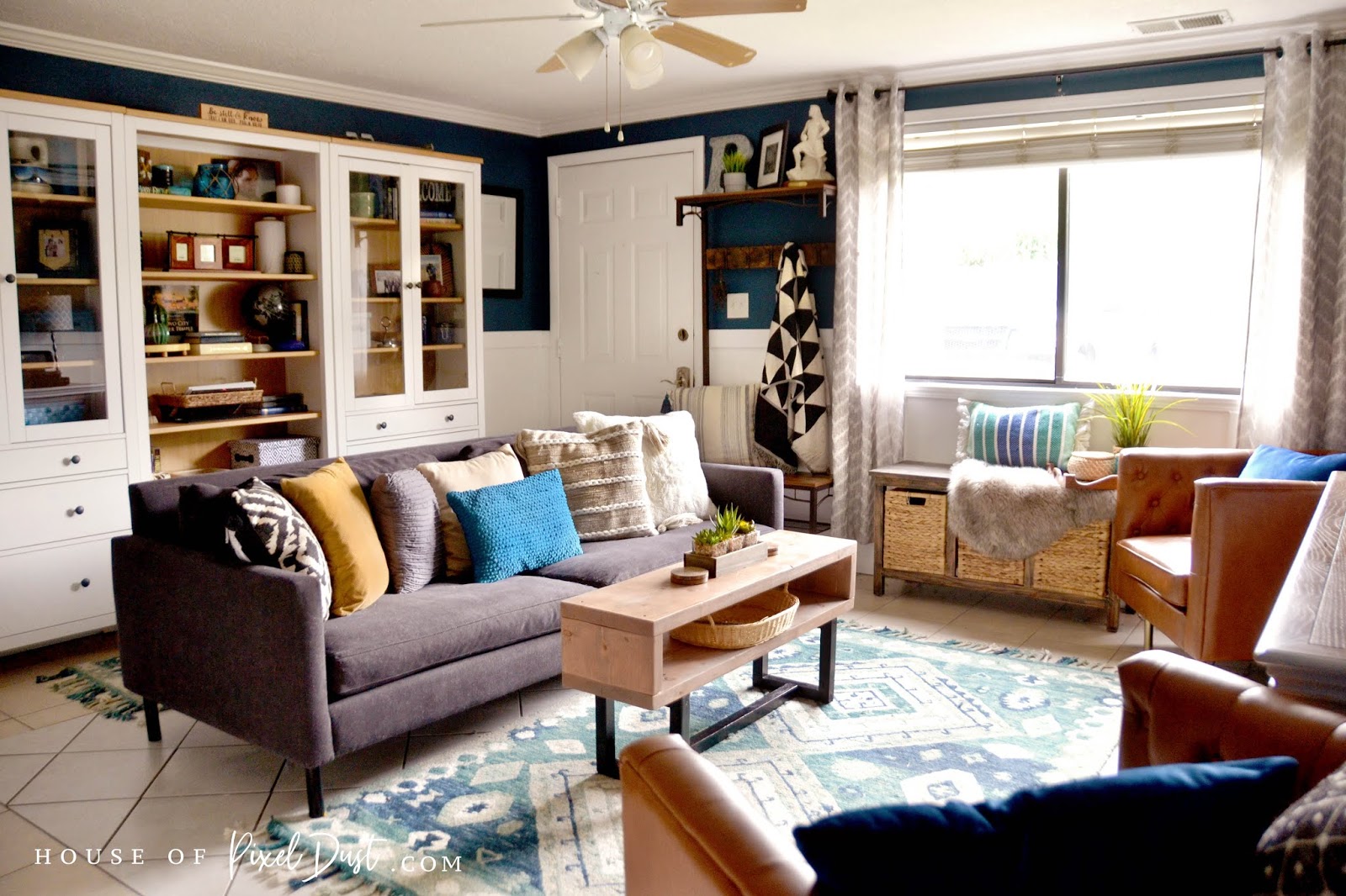 When my brother asked me if I could help him decorate his new condo, I jumped at the chance. I love transforming a space to give it more life and personality. Besides decorating my own home this was my first home decor project for someone else. And Im thrilled with getting to share it with you all. I wanted to give my brothers new bachelor pad a warm inviting feeling, while incorporating things he loves. His requests were that this living room would serve as a social gathering and have a more grown up look than his previous college days look. So we went with a sophisticated boho vibe with masculine touches throughout.