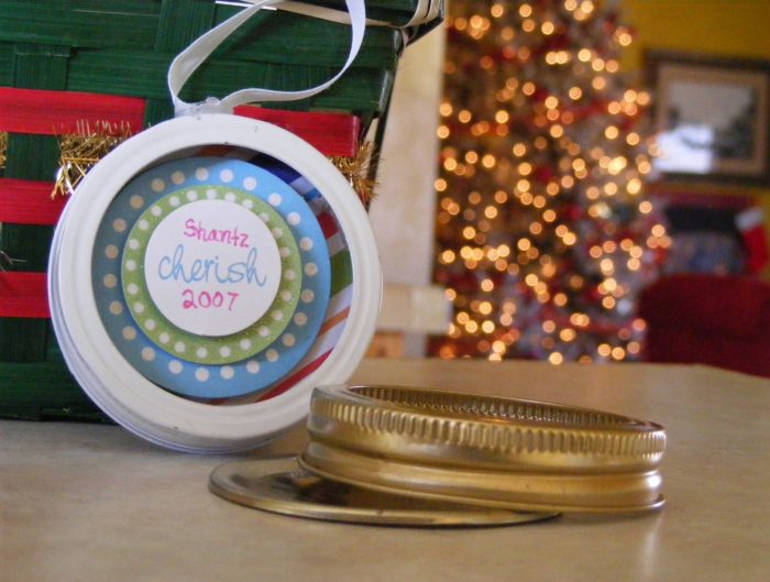 These are easy to make and customizable for any family member. You can just set out a bunch of scrapbooking papers and embellishments and let your family and friends get creative! Need:Mason jar lidswhite spray painthot glue/glue gunribbonscrapbooking …