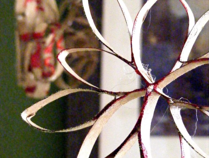 We made these by collecting toilet paper rolls for a couple of weeks. Each toilet paper roll makes one ceiling pendant. This is a super frugal craft that is fun for any age. Need: Toilet paper rollsChristmas ribbonhot …